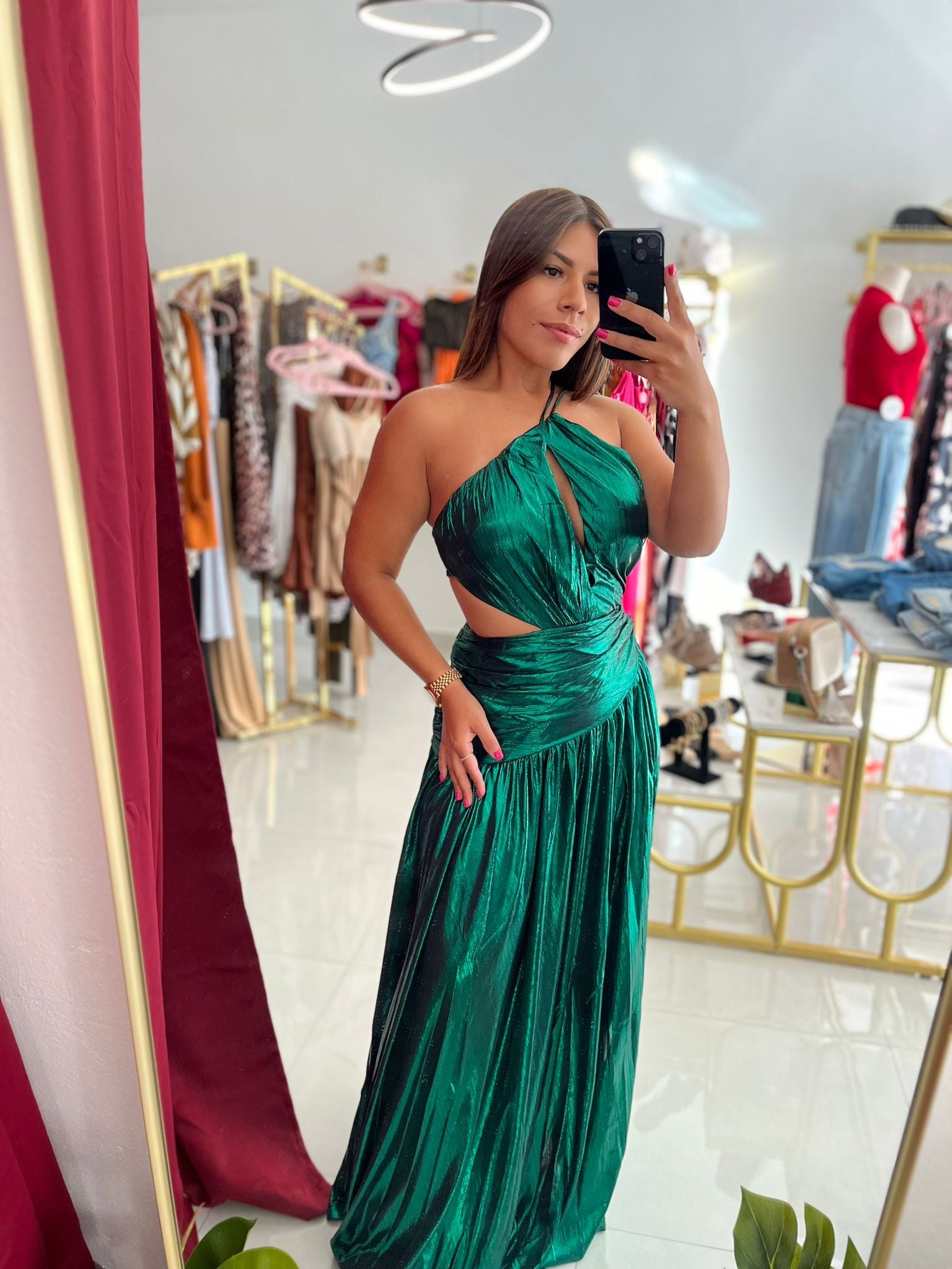 Metalic Green Elegant Maxi Dress